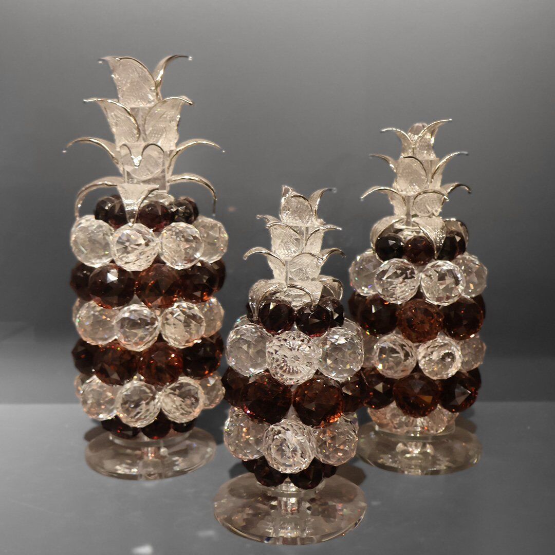 Kahve Şeffaf Kristal Ananas 3'lü